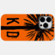 Coque iphone monographie avec design de palmiers. Couverture téléphonique cool avec illustration de thème d'été et monogramme personnalisable. Ajoutez vos initiales de nom à la conception. Couleur arrière - plan de coucher de soleil personnalisée. Vive orange.