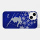 Voici le cas de téléphone parfait pour tous ceux qui aiment le ski alpin! Il est entouré d'un skieur gris argenté avec une cascade de jolis flocons d'argent. En bas à gauche se trouve votre monogramme, également en argent. L'image et le texte sont placés sur un vif arrière - plan de dégradé bleu roi.