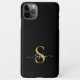 Coque iPhone Monogramme d'or noir moderne Nom de script élégant