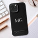 Boîtier de téléphone noir monogrammé. Plongez dans un monde d'expression vibrante avec des conceptions qui mêlent harmonieusement audace et pastels doux, créant une symphonie visuelle qui distingue votre téléphone. Le profil élégant et mince de nos coques ne compromet pas la durabilité - votre appareil reste protégé contre les bosses et les rayures de tous les jours dans le style. Conçu pour s'adapter à la plupart des téléphones Apple iPhones, Samsung et Google Pixel, ce coque combine harmonieusement style et fonctionnalité. Son esthétique minimaliste mais élégante garantit que votre appareil reste protégé de manière avant-gardiste. La touche personnalisée d'un monogramme et d'un nom vous permet de le rendre unique à vous ou un cadeau réfléchi pour votre mari, votre femme, votre fille, votre petite amie ou votre petit ami.