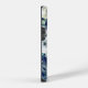 Gras bleu marine et blanc peony floral monogramme iPhone 14 coque pour une femme moderne qui aime de belles fleurs d'aquarelle. Un élégant spray botanique de feuilles verts se déroule autour de votre nom et titre de carrière.