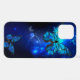 blue, glowing butterflies morpho on a dark ground. Morphine. Design avec des babouins.