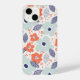 Coque iPhone Motif à fleurs moderne orange et bleu