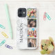 Créez votre propre étui de 4 photo-collage personnalisé avec vos images personnalisées et votre nom sur un élégant arrière - plan en marbre blanc élégant.