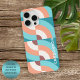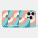 De beaux cercles géométriques contemporains vintages vert marine, brun-orange rouille et blanc motif sur un arrière - plan vert turquoise foncé. Avec l'option de customiser ou de personnaliser avec un nom, un monogramme ou des initiales de votre choix. Design orné, élégant, élégant, élégant et éclectique pour la fashionista artistique sophistiquée, la diva de mode artistique, populaire branché, style d'art rétro vintage, et abstrait amateur de motifs géométriques numériques. Cette conception est disponible en coques de téléphones cellulaires Apple iPhone 6, 7 et 8 Plus, 10 ou X, XR, XS, 11, 12, 13 Mini, 14, 15 Plus et Pro Max. Montrez votre style, regardez à la mode, et sentez élégant avec un design unique sur un accessoire mobile de votre choix.
