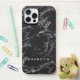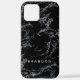 Marbre blanc contemporain rayures texture rayures motif sur noir. Avec place pour customiser avec le nom, monogramme ou initiales de votre choix. Belle couverture moderne et cool pour le brancheur tendance et amateur d'art branché hip, amoureux de motifs artistiques qui veut protéger leur téléphone de la poussière et de la saleté, de l'usure et de la déchirure. Cette conception est disponible Apple iPhone 10 ou X, XR, XS, 11, 12, et 13 coques de mini et Pro Max. Montrez votre style personnel, regardez à la mode et se sentir élégant avec un design unique sur un appareil mobile accessoire de votre choix.