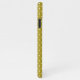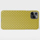 Pattern of white polka dots on a mustard yellow background. The dots are evenly spaced, creating a simple, vintage, playful aesthetic.