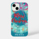 Cette boîte téléphonique rétro de Noël a une couronne turquoise en aluminium peinte à la main avec des ornements rétro classiques, starburst et symboles atomiques. C'est un coque de Noël de style moderne du milieu du siècle est parfait pour célébrer la saison des Fêtes. Vous pouvez personnaliser cette étui téléphonique avec votre propre salutation de vacances, nom et couleur arrière - plan pour correspondre à votre style.