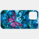 Personnalisez ce coque iphone papillon unique "Un des types" ! Il est doté d'un papillon rose, bleu et noir volant parmi de belles fleurs claires et bleues foncées! Peinture d'art original par l'artiste Kerry Miller.