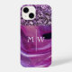 Parties scintillant en marbre violet monogramme élégant iPhone 14 Coque. Parfait motif pour toute personne.