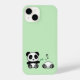Une paire de mignons pandas de dessins animés. Le panda gauche tient un bâton en bambou en regardant le panda droit qui s'est endormi.