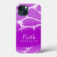 Un coque iphone à motif animal brillant aux teintes violettes audacieuses. Personnalisez cet objet avec votre nom complet. Cet exemple est actuellement le suivant : Faith Williams. Ce motif original de Sarah Trett, est basé sur le dessin trouvé sur une girafe avec un moiré mi-teint point gain motif superposition.
