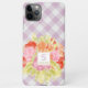 Aquarelle contemporaine rose vif, rouge corail, vert clair et rose pastel clair sur un plaid en vichy couleur pastel rose et blanc. Avec la place de customiser ou de personnaliser avec un nom monogramme ou initial de votre choix. Belle couverture moderne et cool pour le brancheur tendance et amateur d'art branché, amoureux de motifs artistiques qui veut protéger leur téléphone de la poussière et de la saleté, de l'usure et de la déchirure. Cette conception est disponible en Apple iPhone 6, 7, 8, 10 ou X, XR, XS, 11, 12, 13, 14 Mini, 15 Plus et Pro Max coques de téléphones cellulaires. Montrez votre style, regardez à la mode et sentez élégant avec un design unique sur un appareil mobile de votre choix.