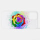 Grand rose fleuri avec pétales arc-en-ciel sur arrière - plan blanc, peint sur des éclaboussures de peinture colorée et lumineuse. 3d