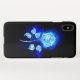 Fleur, rose abstrait de la flamme bleue sur arrière - plan noir. Rose de feu.