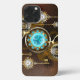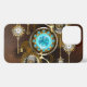 Turquoise lenses with antique watch with brass gears and golden keys on rusty, brown background. Steampunk style.