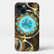 Turquoise lenses with antique watch with brass gears and golden keys on rusty, brown background. Steampunk style.