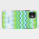 Housse de téléphone à motif zig zag moderne dans les tons turquoises, verts, jaunes et bleus. Customisez cette couverture coque iphone à motifs audacieux avec votre nom et votre famille initiale ou monogramme. Lit actuellement Michelle R. Un cadeau personnalisé idéal pour les filles et les femmes. Conception par Sarah Trett.