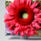 Un arrangement en forme de coeur avec une boîte cadeau rose aux pois blancs, ornée d'un arc et entourée de différentes fleurs dont des pivoines et des roses dans les tons rose et crème. L'arrière - plan est léger, et le texte "Heureuse Sainte-Valentin" est écrit dans une police décorative en bas.