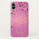 Chic iPhone X coque fait dans un look de papier rose avec des points de ton rose et or, sur le dessus. Personnalisez le texte, en bas du coque, pour répondre à vos besoins. Choisissez le style de coque dont vous avez besoin avant de commander.