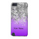 Personnalisez facilement ces bling métallique d'étincelle de parties scintillantes d'argent girly élégant chic de faux et arrière - plan pourpre de regard de satin avec vos initiales faites sur commande des textes, de nom ou de monogramme pour faire un cadeau personnalisé sophistiqué unique. Cliquez sur la personnaliser pour ajuster le texte/taille de la police ou le style. VEUILLEZ NOTER l'argent n'est pas métallique, scintillant, brillant ou scintillant.