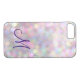 Un chic monogramme violet accentue ce coque iPhone 7 sur un arrière - plan brillant et coloré. Note : aucune parties scintillant ou paillettes n'est utilisée pour faire ce coque, l'arrière - plan pétillant est une illustration photo. Ce coque est facile à personnaliser avec votre monogramme.