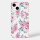 iPhone 14 coque est montré dans une belle impression rose roses. Customisez ce coque ou achetez tel quel.