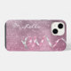 Cet élégant étui téléphonique a un bijou rose comme arrière - plan avec beaucoup d'étoiles en argent brillant. Une image d'un ruban rose et argent brillant à deux tons arrondi cascade d'un côté, tandis que votre nom en écriture blanche est de l'autre côté. Belle et unique !