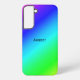 Diagonal Blue to Green Blend Ajouter Nom Samsung Galaxy S22+ Coque, Personnalisez ce modèle avec votre nom.
