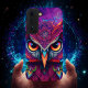 Enchanting owl radiating magenta magic with swirling patterns that seem to cast spells with every glance.