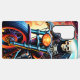un squelette Traversant la grotte de feu. entrant dans le tunnel Enchanted.Il a un vélo trébuché.Il a un pantalon en cuir noir et des bottes de moto Et une veste en cuir noir avec un emblème osseux design comme un design sur la tenue de motard.Il brillait éthérée de son environnement.Avec la lune qui monte derrière lui. La brume monte du feu autour de lui. Dans la nuit sombre, il s'écarte avec des étoiles de nuit au-dessus.