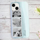 Il y a des espaces encadrés pour trois photos carrés et votre nom sur ce délicat étui téléphonique arrière - plan bleu aquarelle.