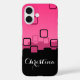 Cet abstrait étui téléphonique personnalisé présente des carrés noirs arrondis qui dérivent sur un arrière - plan rose dégradé. Que se passe-t-il ? Je ne sais pas ; c'est juste de l'art audacieux et coloré ! Vous pouvez ajouter votre propre nom, qui apparaît en blanc avec un script sophistiqué.