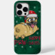 Jolie image de Noël sur un étui téléphonique d'un mignon carlin de dessin animé avec un chapeau de Père Noël et dit, "Joyeux Paw-lidays" avec de la neige autour de lui.