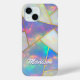 Élégant holographique agate gemstone géométrique iPhone 15 Coque. Pour le rendre plus spécial, il est également monogrammé et personnalisé avec le nom ou les initiales ou tout texte que vous aimez, cliquez sur le lien "personnaliser plus loin" et utilisez l'outil de conception pour modifier la conception si vous voulez. Belle, moderne et cool iPhone 15 Coque Couverture. Montrez votre style personnel, regardez à la mode, branché et sentez élégant autour de vos amis avec un design unique sur votre iPhone ou customisez-le sur un autre produit de votre choix. Que ce soit pour le jour des valentines, Noël ou comme cadeau en général, il fait une idée de cadeau formidable pour toute fille qui aime les choses brillantes modernes. VEUILLEZ NOTER : Il s'agit de graphiques imprimés plats - pas de parties scintillant réelle, de bijoux ou de pièces surélevées.
