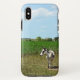 Un âne magnifique se dresse dans un champ et regarde autour de la ferme. Protégez votre téléphone avec un peu de charme champêtre aujourd'hui!