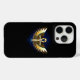 Chevalier égyptien doré aux ailes tressées et brillantes sur un arrière - plan noir. Symbole magique.