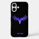 Une image fractale, à l'allure néon, violette et bleue, ressemblant à la tête d'un animal en berne sur un arrière - plan sombre. Customisez en ajoutant votre propre texte.