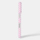Un joli éléphant soufflant des bulles en forme de coeur sur un motif de bande rose bonbon. Coque iphone fille mignonne, personnalisez avec votre nom. Voici l'exemple : Abbaye. Uniquement conçu et illustré par Sarah Trett. www.sarahtrett.com