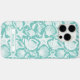 Customize this aqua shell pattern iPhone 16 pro max case with your your name in a trendy modern CAP font in aqua on white. It's so modern and beachy!