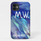 Coques Case-Mate iPhone Aquarelle Bleu Initiales et Moto
