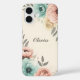 Cet élégant étui téléphonique personnalisé présente des fleurs délicates et croquantes aux textures douces d'aquarelle rose pâle, vert menthe et jaune pâle.