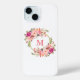 Aquarelle rose Floral Wreath Monogramme Téléphone Case