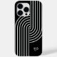 Ce design de boîtier de téléphone branché comprend des arcs concentriques cool entrelacés les uns aux autres pour une ambiance rétro moderne. Personnalisez le modèle de texte avec vos initiales monographiques. Montré ici en noir et blanc, d'autres options de couleur sont disponibles.