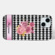 Coques Case-Mate iPhone Arlequin noir blanc avec fleur rose et nom