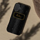 Un étui de téléphone luxueux et élégant avec nom dans cadre doré vintage. Le motif est un motif d'art déco noir éclatant. (le produit n'a pas de véritable étincelle ou de parties scintillant). Ajoutez votre nom et créez un coque personnel élégant.