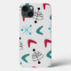 Ce boîtier téléphonique a un design moderne atomique du milieu du siècle de formes boomerang, antennes et starbursts en turquoise, magenta, bleu et noir.