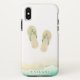 Les bascules électroniques embellies botaniques d'île tropicale élégante d'aquarelle avec la plage sablonneuse accentuent, personnalisé avec le nom, coque iphone.