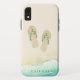 Les bascules électroniques embellies botaniques d'île tropicale élégante d'aquarelle avec la plage sablonneuse accentuent, personnalisé avec le nom, coque iphone de beige arénacé.