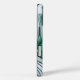 Une belle photo d'une plume de paon avec bijoux bleus est présentée sur ce coque iphone personnalisé.